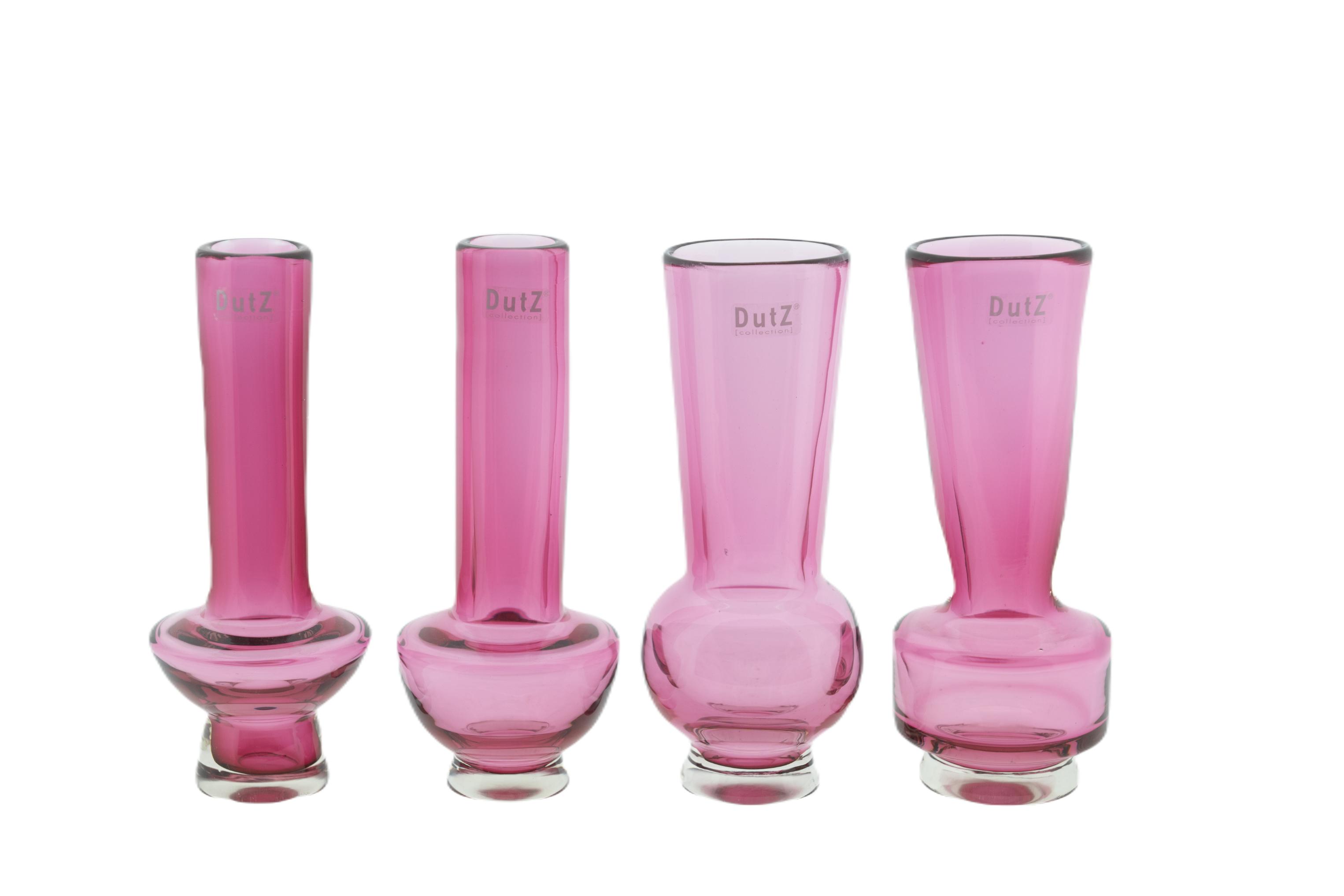 SET VIBE FUCHSIADeze vazenset bestaat uit 4 vaasjes (4 modellen, 1 stuks elk) in een bepaalde kleurstelling. Met deze set vaasjes creëer je eenvoudig een schitterende combinatie vaasjes. Zet ze bij elkaar op een schaal, of los op een tafel, side table, in de badkamer of slaapkamer.De mondgeblazen vaasjes van DutZ collection zijn van hoge kwaliteit en perfect voor enkele bloemen.DutZ collection heeft veel glazen vazen en windlichten in de collectie in veel kleuren. Deze vazenset is een topper in de collectie en zorgt voor jarenlang plezier. De kleurstelling van deze vazenset is fuchsia.• Mondgeblazen• Dik glas• Geblazen in EuropaElk DutZ vaasje glas is een unica! Elke artikel is mondgeblazen door glasblazers uit onze Europese glasfabrieken. Elk product kan dus qua kleur en vorm licht afwijken van de afbeeldingen. Kleine afwijkingen zoals belletjes en krasjes zijn geen defecten maar een gevolg van het ambachtelijke proces van traditioneel glasblazen. Ze verrijken het product en geven het een unieke uitstraling.DutZ= Durf Uitgesproken Te Zijn!